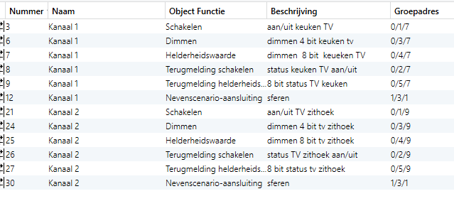 Door steeds dezelfde nummertjes voor de groepen te gebruiken kan je bij het monitoren van de bus sneller zien wat voor zaken er zoal passeren.