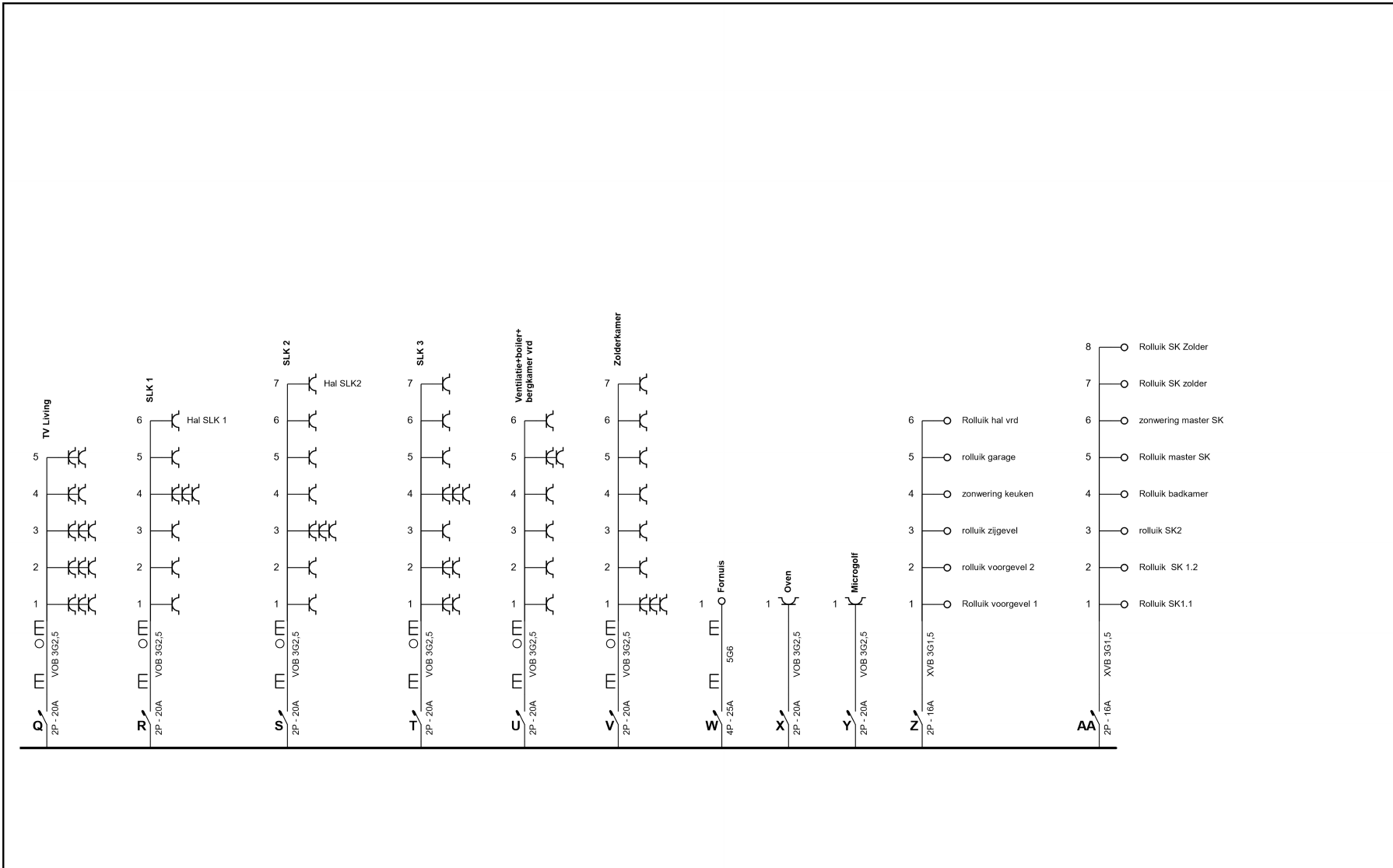 Ik weet niet of het nuttig kan zijn, maar zo heb ik de eendraadschema getekend. Als er fouten in staan hoor ik het ook wel. Het is nog niet de definitieve versie.